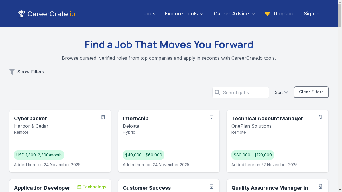 Tired of boring job boards? CareerCrate.io serves up fresh opportunities and free AI tools to supercharge your search. Build killer resumes, fire off custom cover letters, and track your applications โ all in one sleek platform. Land interviews faster, no sweat.