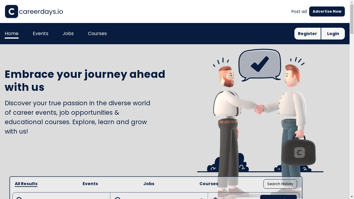 Advertise your jobs, career events, open days, job fairs, Virtual career fairs, educational and training courses FREE on careerdays. Upskill and reskill with new online courses, Apply for latest jobs or register for Job fairs. Careerdays.io is ideal space for Gen Z, professionals, Students and any one looking for flexible jobs or remote jobs.