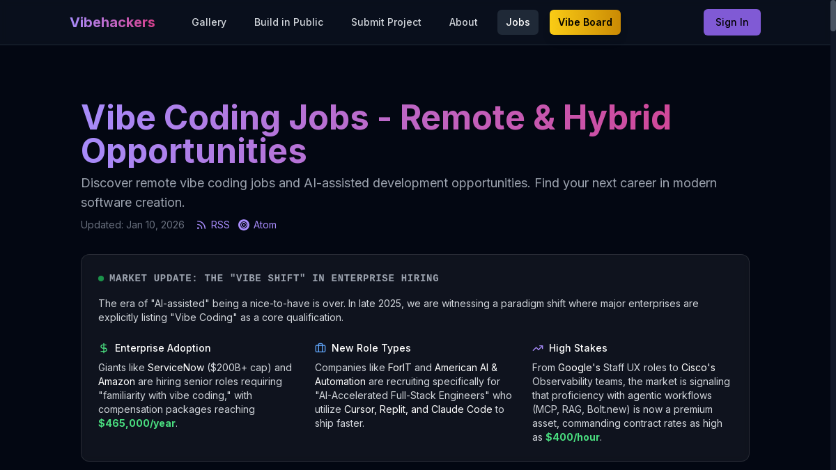 VibeHackers is a specialized job board focusing on remote and hybrid job opportunities in the technology and AI development sectors. It caters to a wide range of roles beyond traditional software engineering, including product managers, designers, operators, and go-to-market professionals who are involved in AI-assisted development. The platform emphasizes jobs that integrate AI technologies, making it a niche site for professionals interested in cutting-edge tech and innovative work environments. VibeHackers supports a modern, remote-first workforce and highlights positions that leverage AI to enhance software and product development.