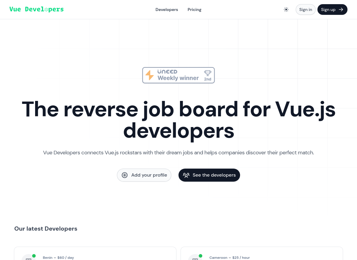 Vue Developers is a specialized job board focused specifically on opportunities within the Vue.js ecosystem. It caters to web developers, particularly those who have expertise in Vue.js, a popular JavaScript framework for building user interfaces. The platform serves as a central hub for employers seeking Vue.js talent and for developers looking for roles that match their skills. The job board features a variety of positions ranging from junior to senior levels, allowing for growth in career paths within the Vue.js community. The website's design is user-friendly and visually appealing, facilitating easy navigation and job searching.